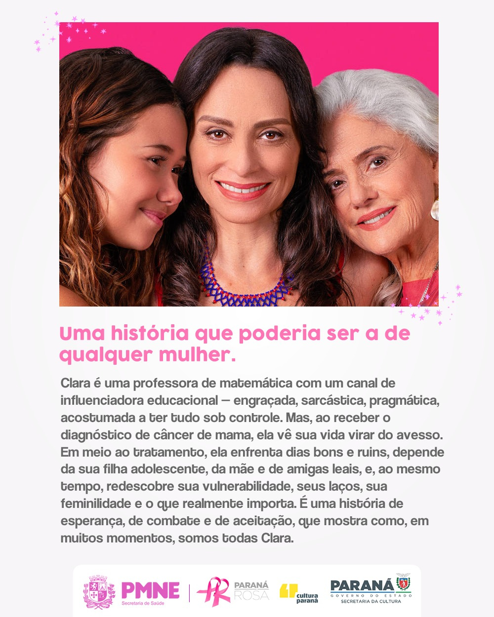 Baseado em fatos reais, o filme aborda a vida de Clara, professora e influencer que enfrenta o câncer de mama com humor, coragem e resiliência. Ele oferece uma reflexão profunda sobre autocuidado, enfrentamento da doença e a importância do apoio emocional durante o processo.
